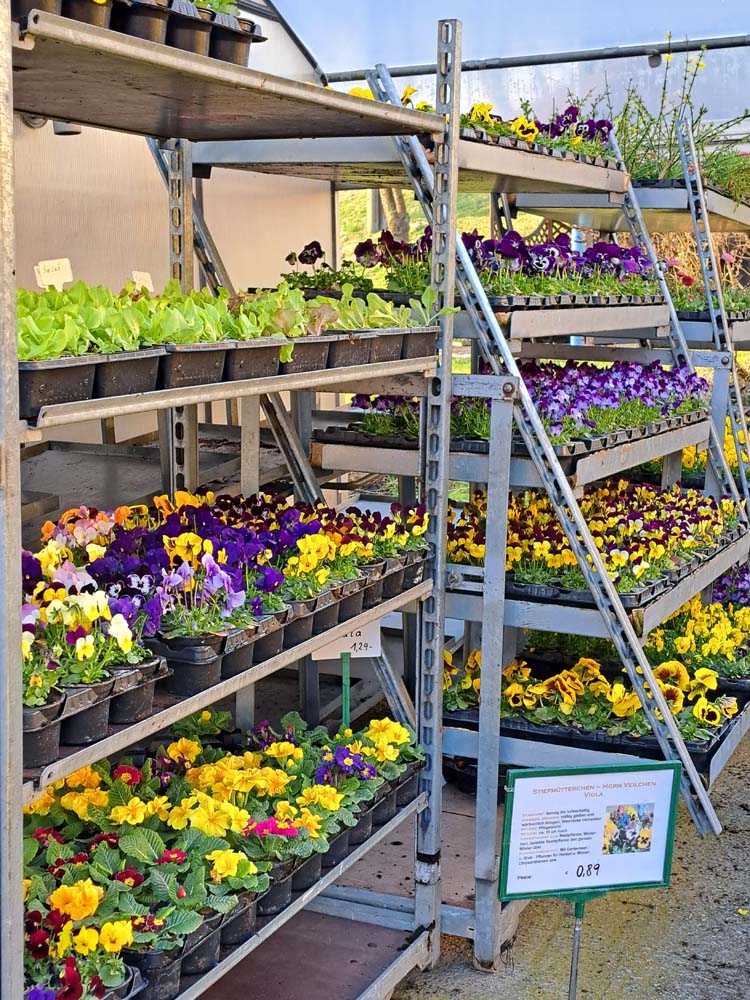 Von April bis Juni ist Pflanzzeit und unsere Hauptsaison. Im Frühling sind unsere Gewächshäuser voll, mit allem was Sie sich vorstellen können. Von Balkon und Beetpflanzen, Gemüsepflanzen und Kräutern bis zu Stauden und Sträucher, winterhartes im Freigelände und vieles mehr. Sie müssen kommen und sich selbst überzeugen. Natürlich kann es sein, das ein Supermarkt u. selbsternanntes Gartencenter für Sie näher liegt, aber diese Vielfalt und Auswahl haben Sie dort niemals. Fragt in der Nachbarschaft, vieleicht kennt uns schon jemand, fährst miteinander, Ihr werdet es sicher nicht bereuen.